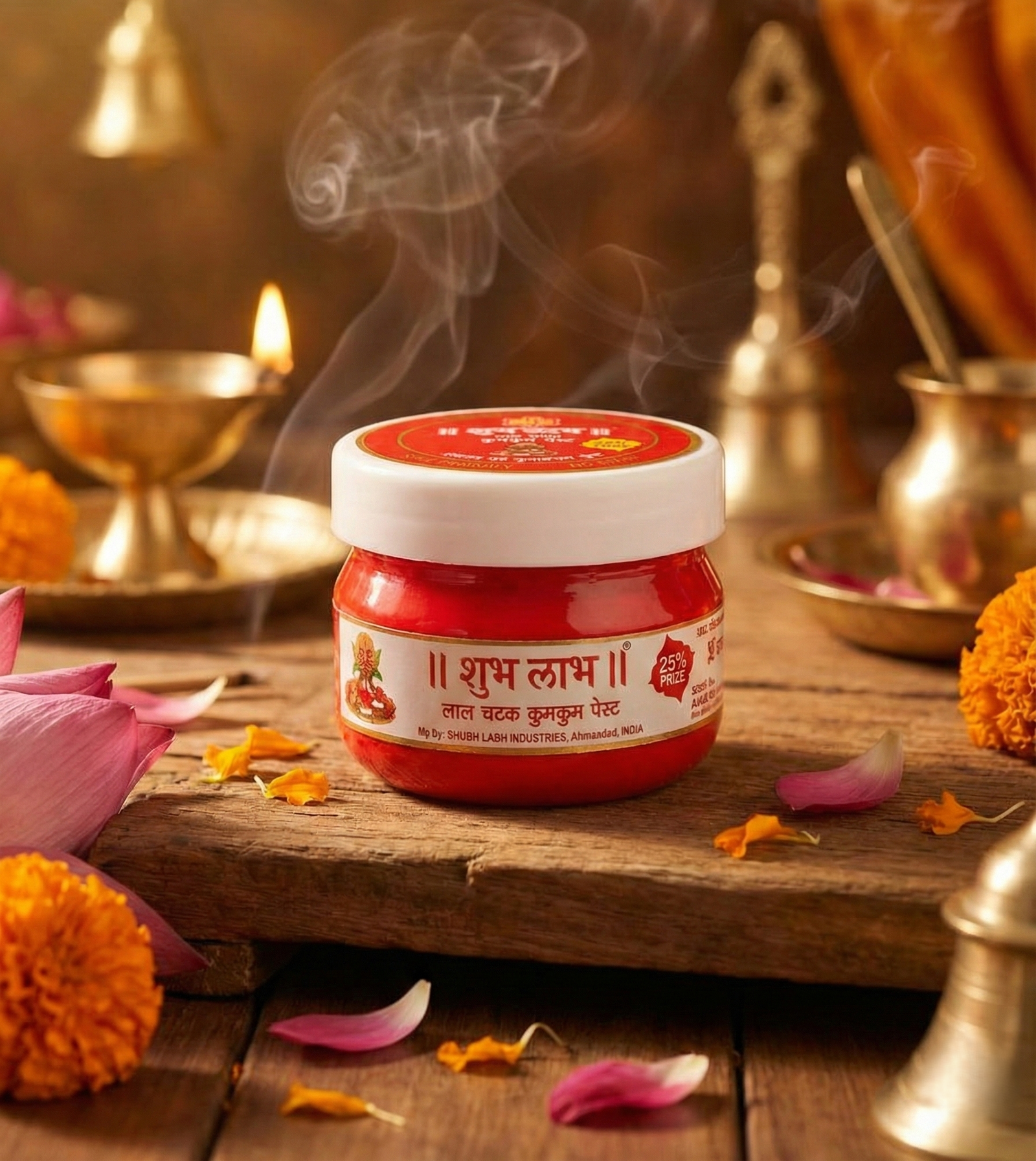 Our hero product, Lal Chatak Kumkum Paste, is specially crafted for tilak and chandla, widely used in daily pooja, temples, and religious rituals. It is uniquely made using Gangajal directly in the paste, eliminating the need for separate purification and ensuring spiritual purity in every application.