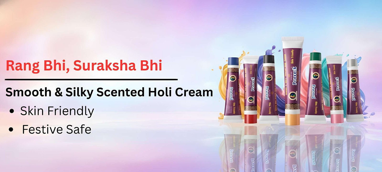 Alongside kumkum, we proudly offer Peacock Smooth & Silky Scented Holi Cream, available in multiple vibrant colors. This premium holi cream is gentle on the skin, smoothly applied, pleasantly scented, and designed for safe and joyful celebrations.